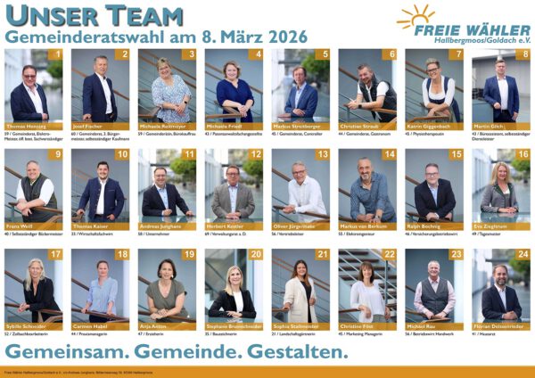 Hallbergmoos und Goldach haben sich von einer ländlichen zu einer kleinstädtischen Gemeinde gewandelt. Trotz dieses Wandels werden wir unsere traditionsreichen Werte bewahren und gleichzeitig einen sozial-, umwelt- und wirtschaftsfreundlichen Weg beschreiten. Mit mehrstöckiger Bebauung im Zentrum wollen wir den Flächenverbrauch verringern und gleichzeitig den Ortskern weiterentwickeln. Der Bereich rund um den Rathausplatz soll durch durchdachte Maßnahmen zu einem einladenden und lebendigen Mittelpunkt für alle werden.